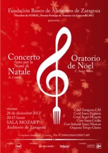 Organizado por la Fundación Banco de Alimentos de Zaragoza y Teruel, con la colaboración de Obra Social CAI y de Federación Aragonesa de Coros, se ofrece al público un Concierto Benéfico en Zaragoza , para recaudar fondos.