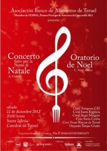 Organizado por la Fundación Banco de Alimentos de Zaragoza y Teruel, con la colaboración de Obra Social CAI y de Federación Aragonesa de Coros, se ofrece al público un Concierto Benéfico en Teruel, para recaudar fondos.